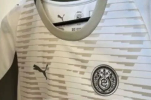 'Het shirt is overwegend wit en voorzien van een artistiek strepenpatroon, geïnspireerd op de iconische pilaren van het Philips Stadion. De details in beige en donkergroen vormen een stijlvolle aanvulling op de witte basiskleur en versterken het tijdloze ontwerp, dat is gemaakt met oog voor het verleden én een blik op de toekomst', schrijft PSV over het nieuwe shirt.
