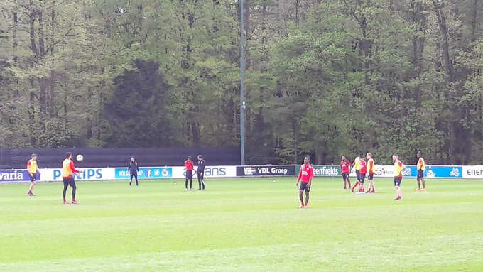 Rik Elfrink@RikElfrink·Follow#PSV traint in prachtig weer, voor de kampioensreceptie. Zoet traint weer individueel mee. Piroe en Duarte nog bij de groep. Cocu even in gesprek met Donyell Malen, een van de 'coming men' bij PSV.1:07 PM · Apr 25, 201818ReplyCopy linkRead 6 replies