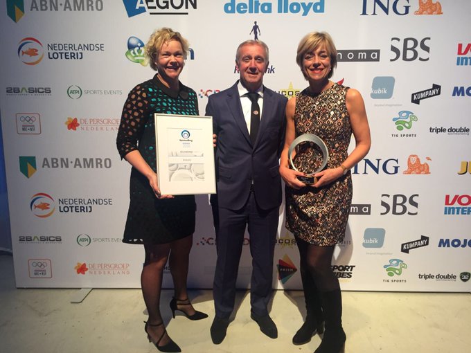 Nanda Huizing (Philips) nam de prijs samen met Mister PSV Willy van der Kuijlen in ontvangst. Proficiat founder @PhilipsNL! #proudofyou