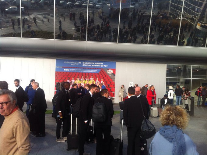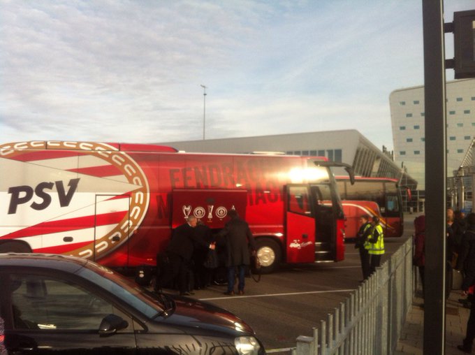 Volgens nog onbevestigde berichten staat er een verdachte tas op Eindhoven Airport. PSV gaat terug naar De Herdgang.