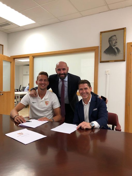 Done deal! @LuukdeJong9 vertrekt per direct naar @sevillafc. De topscorer van Nederland van afgelopen seizoen en goed voor 112 doelpunten in totaal voor @psv tekende vandaag een contract voor 4 seizoenen. Gefeliciteerd Luuk 📄🖊🎉🥂